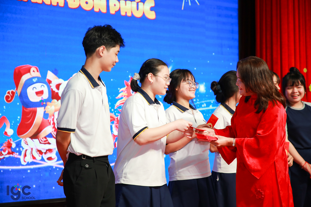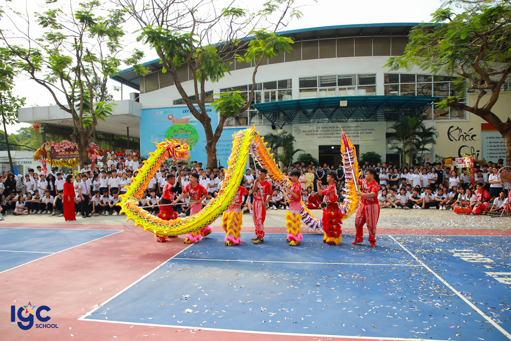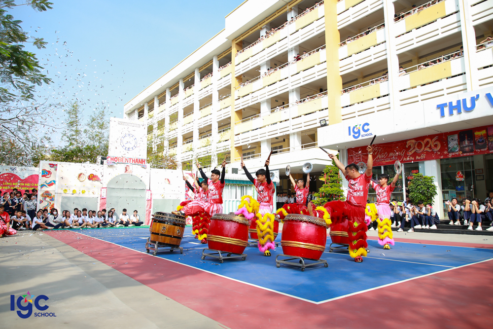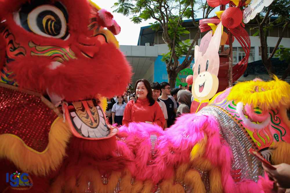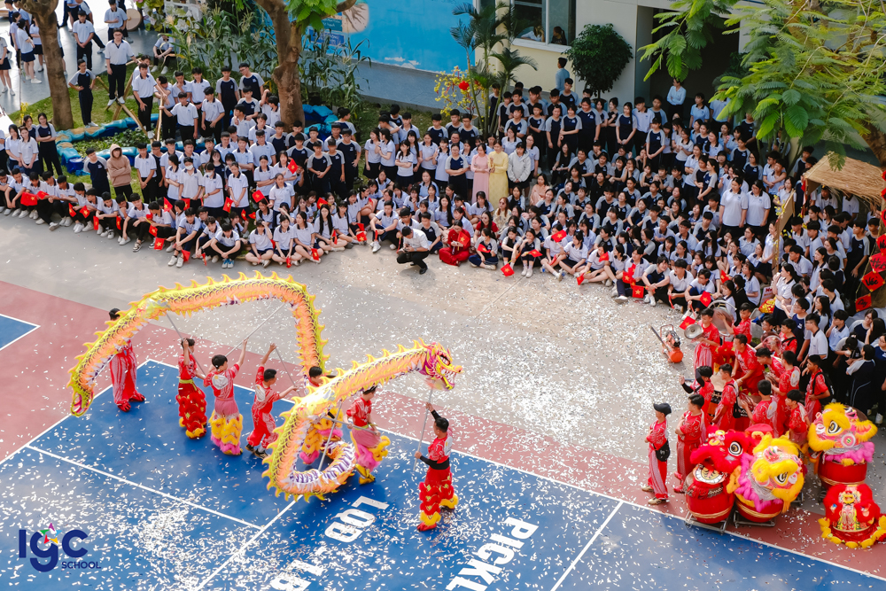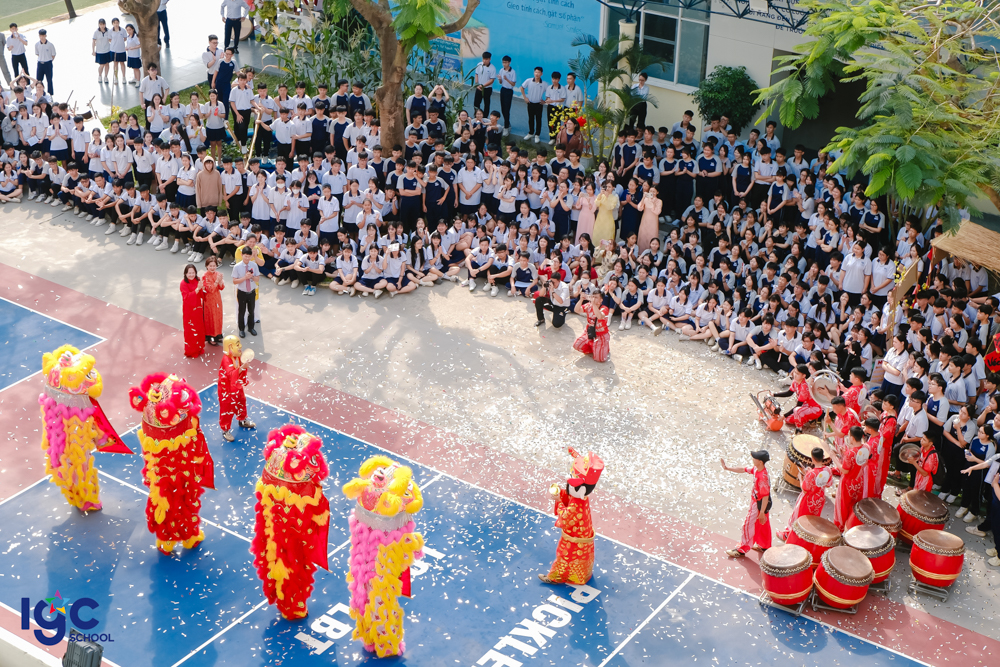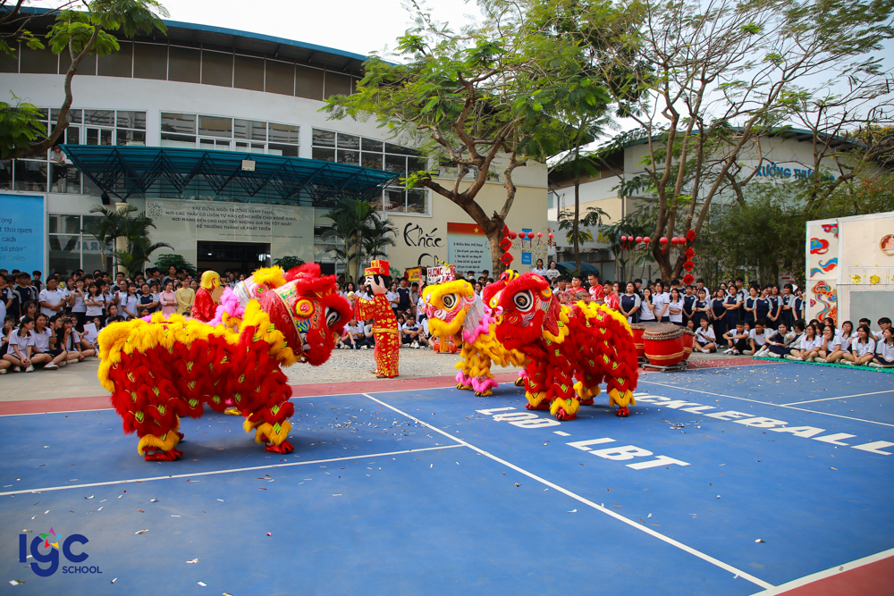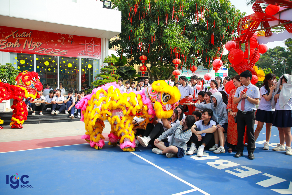Những điệu múa lân – sư – rồng rộn ràng vang nhịp trống khai xuân, mang theo lời chúc may mắn – bình an – thịnh vượng. Những phong bao lì xì đỏ thắm được trao tay không chỉ là món quà đầu năm, mà còn là sự gửi gắm niềm tin, kỳ vọng về một năm học hanh thông – thuận lợi – thành công.