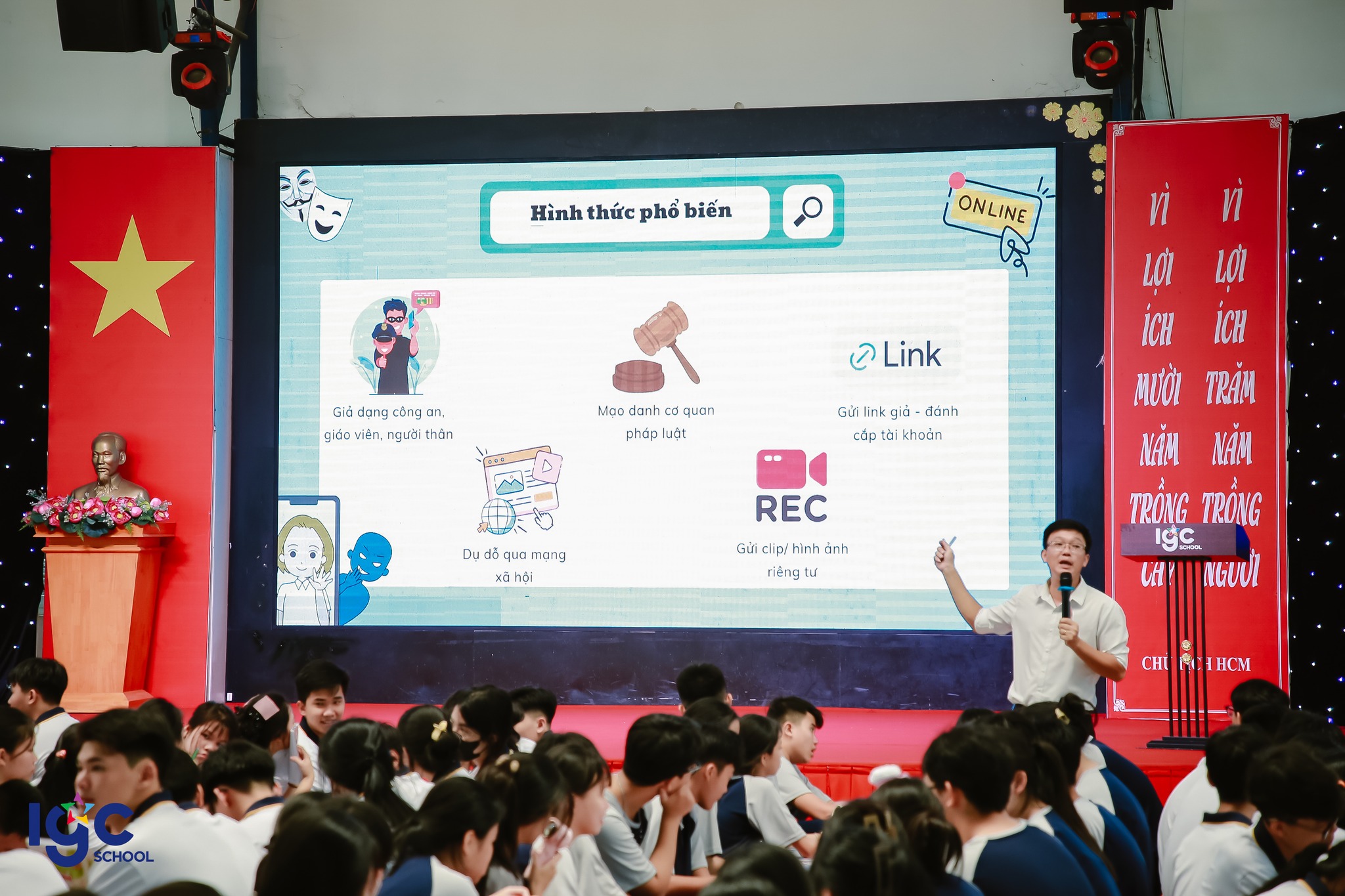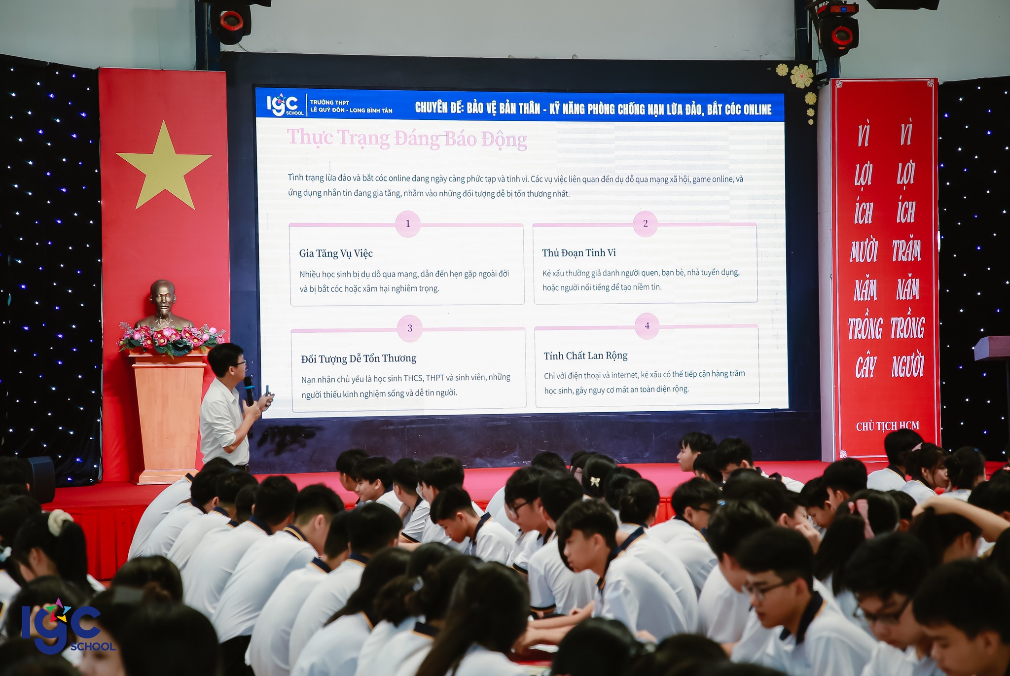 Với những thủ đoạn tinh vi và thao túng tâm lý, bất kỳ học sinh nào cũng có thể trở thành nạn nhân nếu không được trang bị kỹ năng phòng tránh. Để giúp các em chủ động phòng ngừa, trường THPT Lê Quý Đôn - Long Bình Tân đã triển khai các hoạt động thiết thực như: