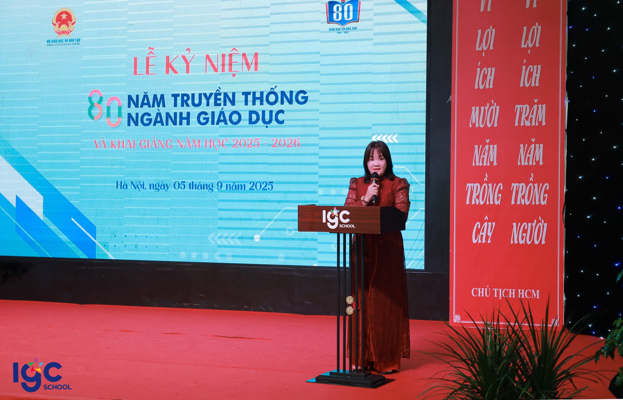 Cùng với đó, cô Hiệu trưởng Lý Thị Quế đã có bài phát biểu đầy cảm xúc, truyền đi nguồn năng lượng tích cực và tinh thần quyết tâm cho toàn thể thầy cô, học sinh và phụ huynh. Cô nhấn mạnh rằng, năm học 2025 – 2026 sẽ được mở ra với thông điệp “Xuất sắc từ những việc đơn giản nhất” – một thông điệp giáo dục gần gũi, sâu sắc và đầy tính nhân văn.