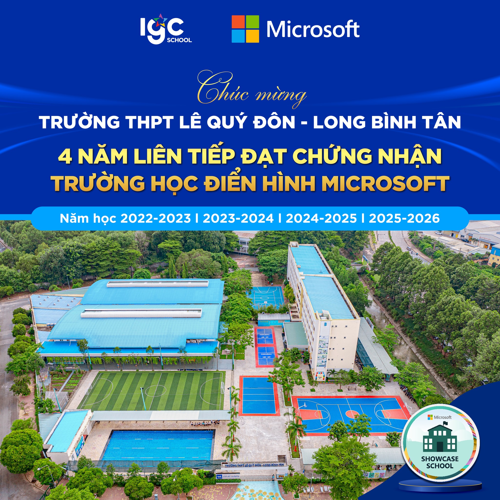 Năm học 2025, Trường THPT Lê Quý Đôn – Long Bình Tân tự hào bước sang năm thứ 4 liên tiếp được Microsoft công nhận là Microsoft Showcase School – Trường Học Điển Hình.
